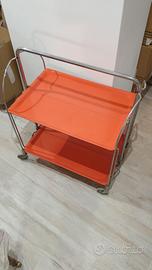 Carrello cucina anni 60 fatto in Germania oggetto di modernariato in acciaio cromato e plastica arancione con ruote originale, pieghevole salva spazio, su Roma posso portarlo
