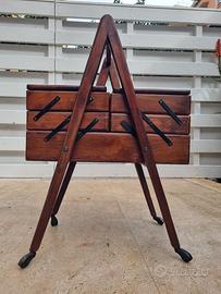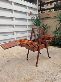 Carrello da cucito antico, un pezzo di design tipico degli anni '60/'70, perfetto per gli amanti del vintage e dell'artigianato.