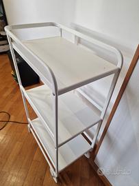 Vendo carrello da cucina di colore bianco usato ma ben conservato, con piccola imperfezione sulla parte alta del piano. Dimensioni 56 x 97x 34 ( Lunghezza x Altezza x Profondità). Ritiro a mano.