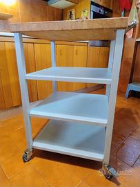 Carrello da cucina di marca Maistri, robusto con struttura metallica e tagliere in massello e appoggia canovacci in inox satinato Su ruote con freno, ha tre ripiani. In ottime condizioni, il tagliere non è mai servito per tagliare pertanto non ha graffi, solo qualche macchie . Largo e profondo 55 cm alto 83, il tagliere è alto 5 cm. Non spedisco, è troppo pesante.
