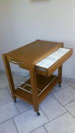 Carrello da cucina in ottime condizioni tinta noce con cassetto , porta bottiglie nella parte sotto e porta coltelli nella parte laterale. Quattro ruote girevoli di cui due con possibilità di bloccaggio . Misura 75cm x 48cm altezza 80 cm. Ritiro a domicilio no spedizione.