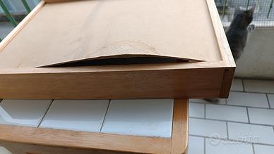 Struttura in legno con ruote per facile spostamento. Le misure sono 49 x 37 x 86,5 h