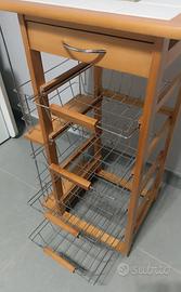 Carrello da cucina in legno con ruote, in ottime condizioni. Misure 47x37x82 (LxLxH) cm