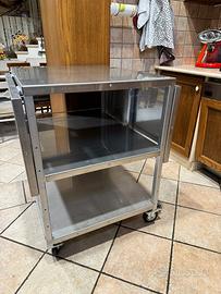Tavolo con piani in acciaio inox con piani ribaltabili. Piano centrale cm 80 x 65, ante ribaltabili cm80x 40.