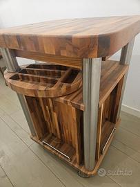 Carrello da cucina polifunzionale in legno, con tagliere , cassetti , portaccessori e portapiatti .
