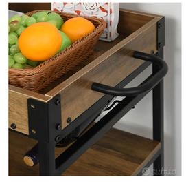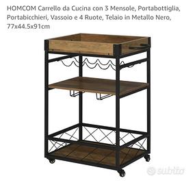 Carrello da cucina Homcom con tre mensole, portabottiglie, porta bicchieri, vassoio, 4 ruote, telaio in metallo. Dimensioni 77x44.5x91