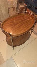Carrello da portata vintage in metallo cromato e compensato/plastica con finitura effetto legno. ATTENZIONE Le ruote si muovono bene, leggermente rovinato sul metallo. Ritiro a carico dell'acquirente, no resi.
