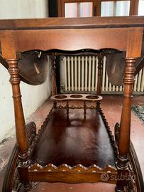 Carrello funzionante in buono stato, solido, (qualche tarlo), ideale per veloce restauro. Altezza 66 cm piano chiuso 43x74 aperto84x74