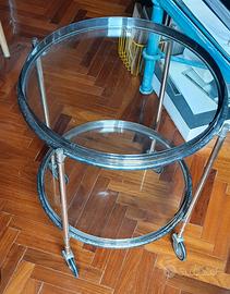Carrello di servizio o da portata con ruote in metallo argentone e vetro anni 70 smontabile con due ripiani/vassoi con vetro estraibili, misure: diametro carrello 53 cm, diametro vassoio estraibile 46 cm, altezza 60 cm. Vendo 150 euro.