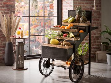 Carretto espositore su ruote In Stile Industriale realizzato a mano da maestri artigiani