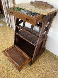 Vendo carrello espositore e portabottiglie con ripiano in marmo 2 cassetti piccoli e 1 grande Altezza cm103 Profondità base cm53 Larghezza cm70