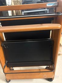 Carrello fossa pedretti noce e nero con portavivande, rotelle, due ripiani. Usato poco