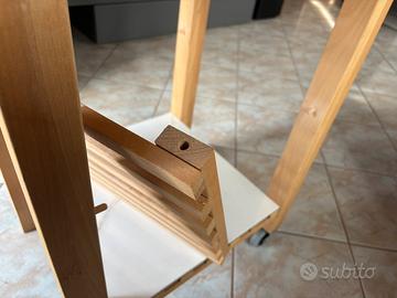 Carrello Faggio Bevkam Ikea Con ruote Possibilità di mettere ripiano Con applicazione piastra in carlite con effetto marmo Applicato anche asta appoggio laterale
