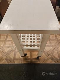 Carrello IKEA in legno, pitturato poi di bianco con ben quattro ruote con freno. Altezza 1 m. Larghezza 52 cm. Lunghezza cm. 120. Stile sabby chic. Solo watthapp 328 70 60 104 Trieste Euro 40