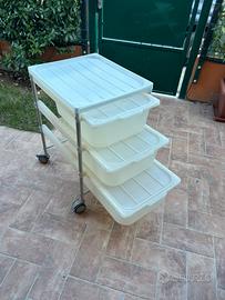 Vendo carrello Ikea stolmen con ruote altezza 76 larghezza 49 profondità 57 con tre cassetti con coperchio. Ogni cassetto misura internamente 38 per 49 alto 15