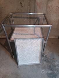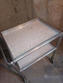 CARRELLO IN ALLUMINIO DOPPIO RIPIANO, IL RIPIANO ALTO SI TOGLIE IL SECONDO RIPIANO E FISSO IL CARRELLO DISPONE DI RUOTE IL TUTTO IN BUONO STATO.