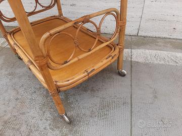 CARRELLO IN BAMBOO CON DOPPIO PIANO E GRANDI MANICI ANNI 60