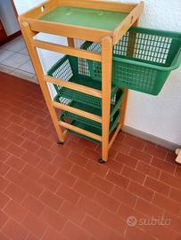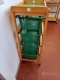 Carrello in legno con cestelli estraibili