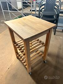 Carrello in legno con piano e ruote misure Profondita 58cm Larghezza 50cm Altezza 85cm