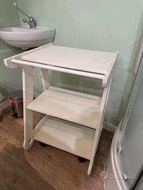carrello molto robusto e pari al nuovo, bianco , con ruote. dotato di porta rotoli di carta . In ottime condizioni ideale x estetista o parrucchiera . cedo x chiusura attività