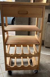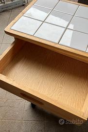 CARRELLO portatutto con piano in piastrelle bianche in ceramica Portabottiglie e comodo cassettino 37x48 e altezza 83 compreso le ruote Consegna a Mano