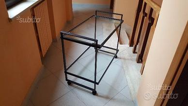 Carrello in Metallo - Elegante carrello di arredamento colore grigio scuro (quasi nero). In robusto metallo e vetro con ruote. Altezza cm 70, Larghezza cm 83 e profondità cm 44. Il vetro è un po' scheggiato in alcuni punti, ma il tutto è in ottime condizioni. Pagato 170,00 Euro, vendo a un terzo del suo prezzo con ritiro a mano a Mercogliano (Avellino). Prezzo fisso, non accetto scambi.