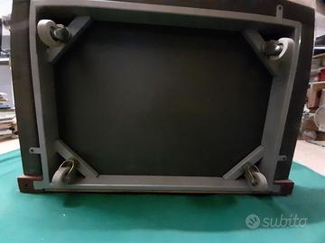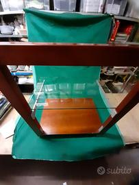 Carrello in noce con ruote per TV con mensola in vetro temperato con misura 76 x 47 centimetri . Il carrello misura: larghezza 76, profondità 53 e altezza 94.Carrello in buone condizioni e robusto con ruote su telaio in ferro e mensole in metallo inbrucolate. Mancano 3 su 4 piccoli dadarelli con gommini per fermare il vetro. Uno c'è. Se interessati si accettano eventuali proposte. Grazie.