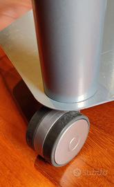 Dotato di 4 ruote doppie pivottanti con doppia fascia di rotolamento in gomma