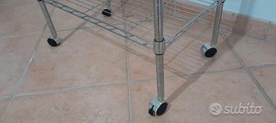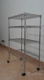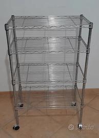 Carrello/ libreria bassa in mettallo. Ripiani regolabili in altezza. Su ruote. Utilizzabile anche come porta stereo o stampante. Misure: 35×59x94(h) cm. Ottime condizioni. Ritiro zona industriale Asti.