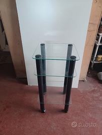 Carrello multiuso gambe in metallo completo di ruote e 3 ripiani in vetro da 6mm trasparenti. Colori disponibili: nero - noce - bianco.