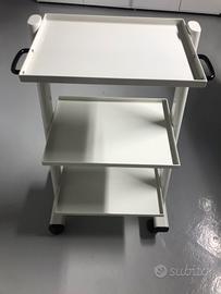 Carrello NUOVO mai usato con tre ripiani di colore bianco in metallo verniciato a caldo e con presa multifunzionale a 3 spine