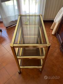 Bellissimo Carrello anni 70ottone a tre piani di vetro con 4 ruote scorrevoli larghezza cm.78 Lunghezza cm. 42 Altezza con ruote cm. 71,5