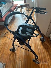 Deambulatore per Anziani con Seduta Pieghevole, Carrello per Anziani per Camminare in Acciaio (Portata 130KG) Sedile e Schienale Imbottito, Freni di Stazionamento,