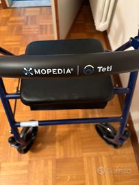 Vendo carrello per anziani Mopedia Teti nuovo mai usato ancora con pellicola sulle ruote freni per stazionare quando ci si siede porta oggetti sotto sedile adatto anche per fuori casa.