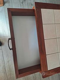 carrello per cucina in legno, con rotelle e cassetto