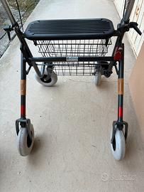 Carrello per persone in difficoltà a deambulare; ausilio per muoversi in sicurezza, con ruote e freno. Purtroppo non è mai stato utilizzato ed ora non serve più!!