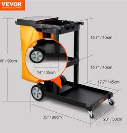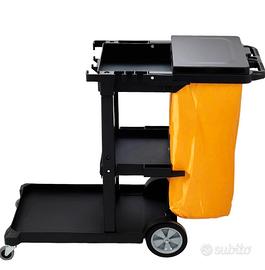 Carrello di Pulizia a 3 Ripiani: il carrello per pulizia di servizio aiuta a organizzare gli utensili e aumenta l'efficienza. I ripiani mantengono gli strumenti di pulizia in ordine. Una base della piattaforma offre spazio sufficiente per sistemare un secchio o forniture per pulizie. I ganci su entrambi i lati consentono di posizionare gli strumenti a barra lunga. È la soluzione flessibile perfetta per le diverse attività di pulizia. Materiale PP Discreto & Durevole: il carrello per le pulizie adotta materiale PP ad alta resistenza che aumenta efficacemente la capacità di carico. Il carrello del bidello non si crepa o si deforma anche se pieno di carico. Tenere fino a 90,7kg. Sacco Resistente: possibile raccogliere il volume massimo da 94L, capacità di carico fino a 10kg. Il sacco per raccolta spazzatura è realizzato in PVC robusto e non si strappa facilmente. Gli anelli della fibbia garantisce che il sacco non cadano. Appendere il sacco della spazzatura e usarlo direttamente non è mai stato così facile. Installazione Semplice: la confezione del carrello per pulizie a 3 ripiani include con istruzioni dettagliate per l'installazione, un paio di guanti, un cacciavite e una chiave inglese. Si può installare il carrello in modo facile. Il prodotto sarà spedito con un cartone di carta kraft a 5 strati, riduce efficacemente i danni e perdita di accessori. Utilizzo Versatile: dotato di due ruote anteriori universali a 360°, ruote posteriori stabili da 2 pezzi e un'ampia maniglia, è possibile spingere il carrello delle pulizie su ruote senza sforzo. Un assistente per la pulizia di tutti i rifiuti in uffici, hotel, aeroporti, appartamenti e altri luoghi.