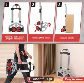 Carrello Pieghevole a Mano, Carrello Portatile Pieghevole, Carrello Utile Portatile Fino a 60 kg, Carrello di Trasporto per Bagagli, Shopping, Uso Esterno
