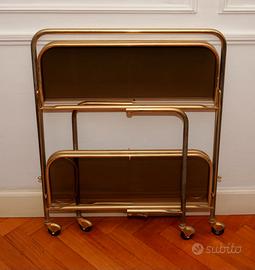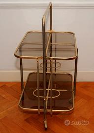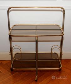 Carrello pieghevole in ottone e vetro porta vivande porta bottiglie