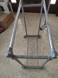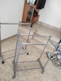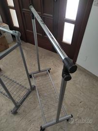 SONO DUE CARRELLI PORTA ABITI CON RUOTE, UNO DIVERSO DALL'ALTRO, UNO SINGOLO, L'ALTRO DOPPIO, SONO REGOLABILI IN ALTEZZA, QUELLO CON PORTATA DOPPIA A LA POSSIBILITA' DI ESTENDERE I 4 BRACETTI IN LARGHEZZA,ENTRANBI HANNO LA PARTE SOTTO CHE PUO' ESSERE USATA COME PORTA SCARPE, STRUTTURA IN ACCIAIO E PLASTICA, SONO COME NUOVI USATI POCHISSIMO. NB.IL PREZZO SI INTENDE PER IL SINGOLO OGGETTO.