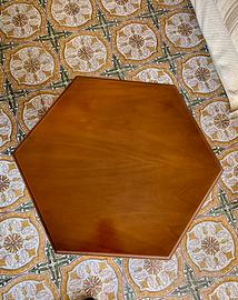 Carrello porta bottiglie/ mobile bar in legno con ruote, pianta esagonale, manici e spondine in ottone. Stile classico, dimensioni cm. 45 x 45 x 70.