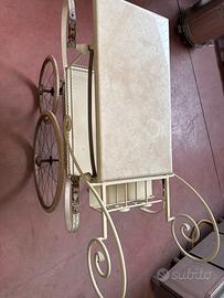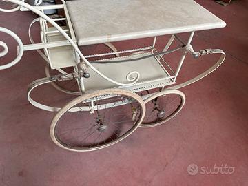 Antica struttura di carrozzina inglesina anni 60 trasformata in carrello porta formaggi e passiti in abbinamento. Pezzo unico da amatore