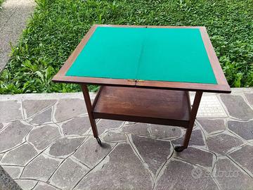 Vendo carrello in ottime condizioni da antiquariato. Il carrello h un doppiofondo tramite meccanismo girevole e congegno di apertura a libro con tappeto verde per giochi.
