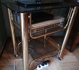 Carrello porta tv con ruote e 2 ripiani in vetro temperato, misure: altezza cm 78, piano superiore cm 70x44. Ottime condizioni