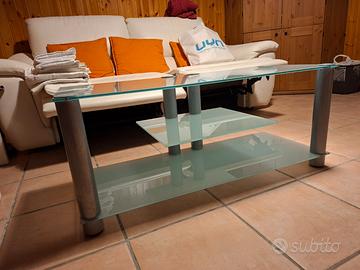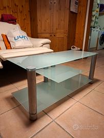 Carrello porta tv in vetro gambe in alluminio con rotelle L100 h43 p41