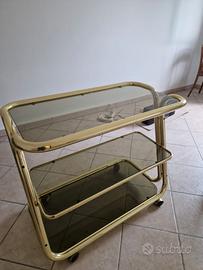 Vendo carrello porta TV in ottone con 3 piani in vetro fume'.Misure larg.cm.85 profon.cm.47 altezza cm. 77. Buone condizioni