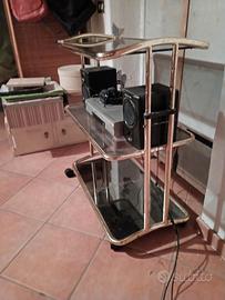 carrello per tv in ottone e vetro fumé alzabile, 3 ripiani,vintage anni 80