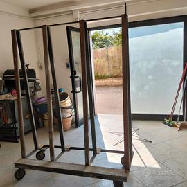 Vendo robusto carrello porta vetri/porta lastre in ferro, completo di ruote per facile spostamento.