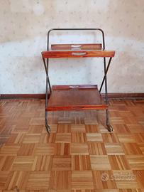 CARRELLO DA SOGGIORNO, CON DUE RIPIANI IN LEGNO (TEAK) SU DI UNA STRUTTURA METALLICA D'ORATA CON RUOTE GIREVOLI. CARRELLO CON DUE RIPIANI IN LEGNO TEAK SU STRUTTURA METALLICA CON ROTELLE GIREVOLI. LE MISURE SONO: LUNGHEZZA _ 48 CM PROFONDITA' _ 45 CM ALTEZZA _ 77 CM