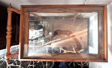 esemplare originale e unico realizzato con intagli su disegno, con piano in vetro. MISURE INGOMBRO MAX COME DA FOTO: H 72,5 x L 96 x P 58,5